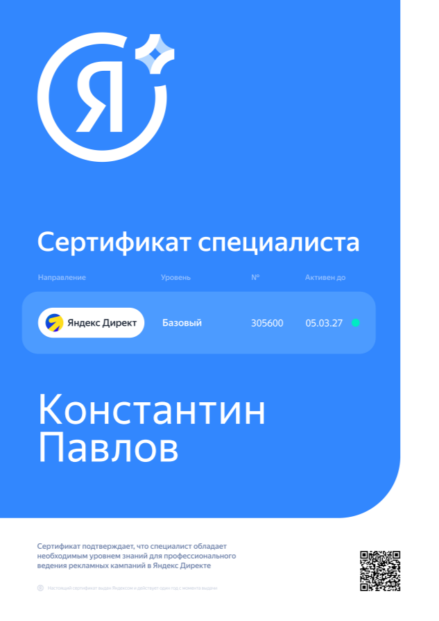 Меня зовут Павлов Константин, я занимаюсь рекламой и маркетингом более 13 лет. Помогаю настроить рекламу в Яндекс Директе, увеличить конверсию сайта, поднять процент квал лидов и продаж